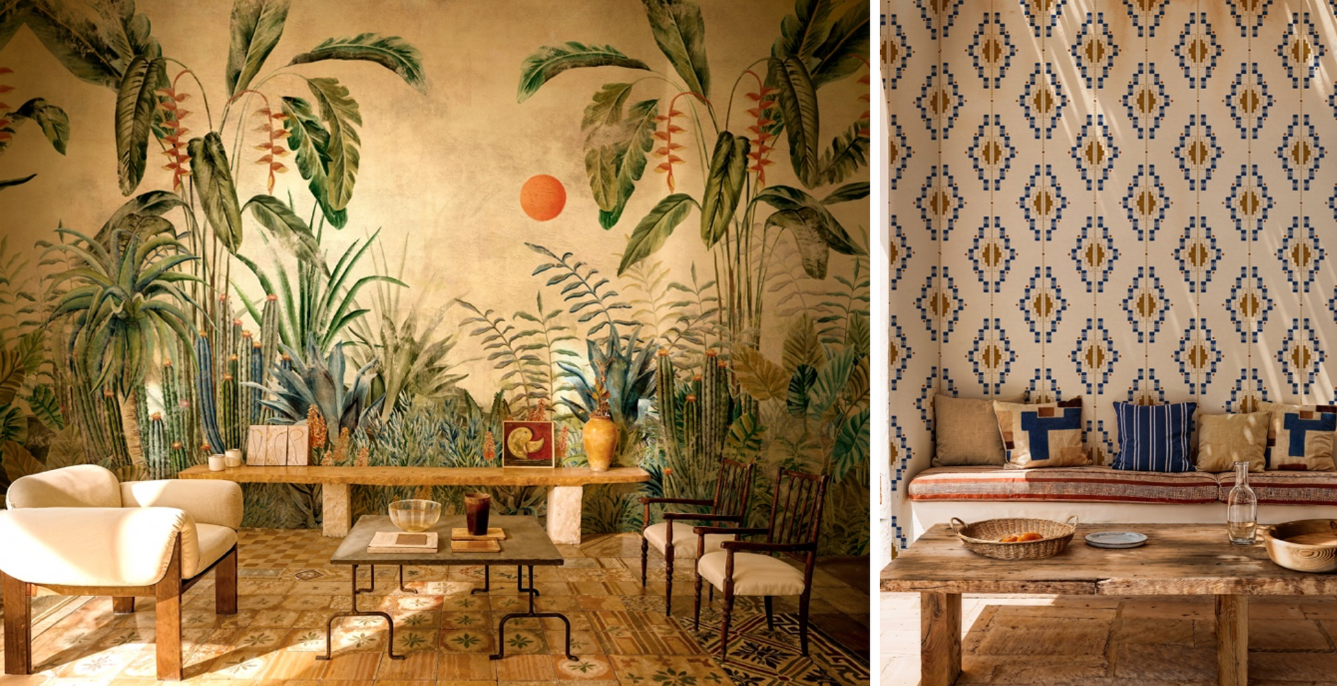 In de ‘Sarape’-collectie komen historische symboliek, natuurmotieven en authentieke ambachtsdetails samen in moderne interpretaties. De behangontwerpen zijn rijk aan verwijzingen naar het dagelijks leven, de rituelen en de natuurlijke omgeving die zo’n belangrijke rol spelen in het Mexicaanse culturele landschap.