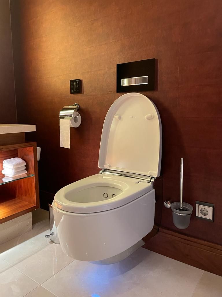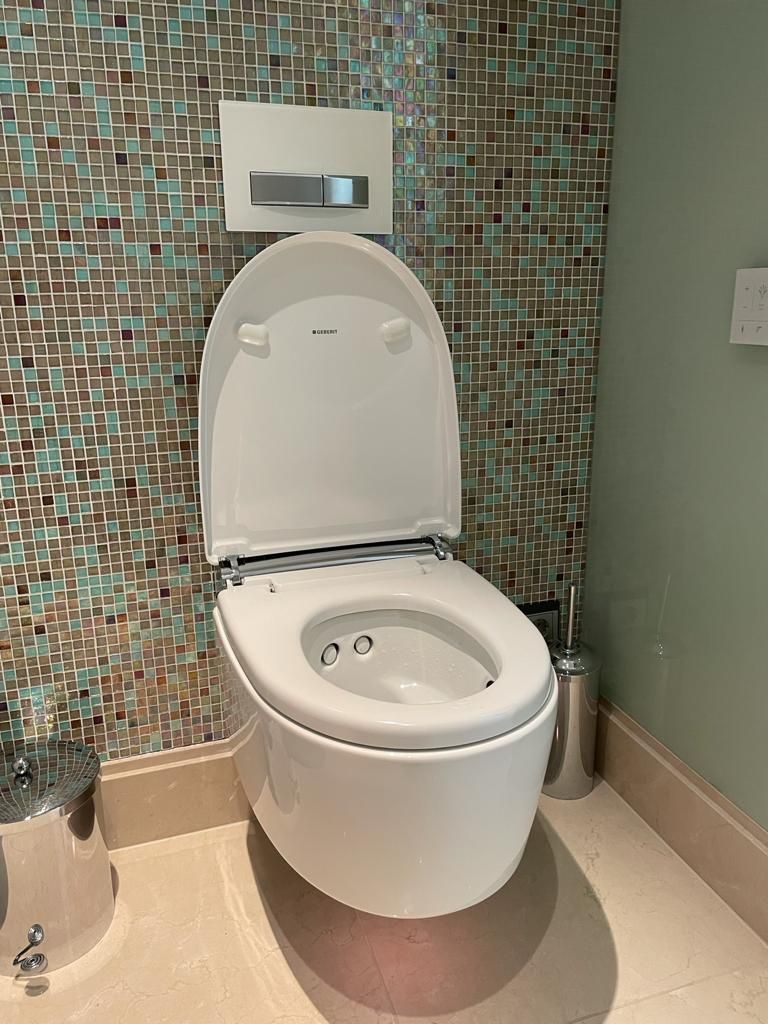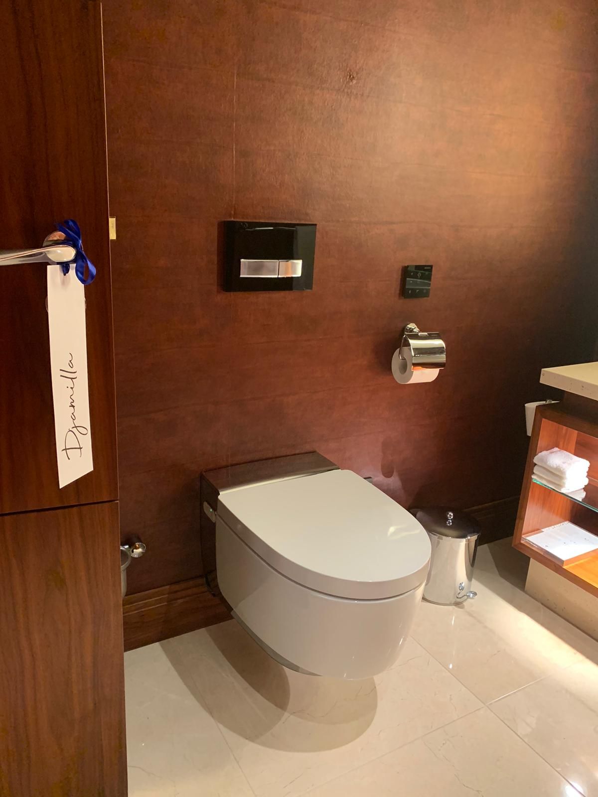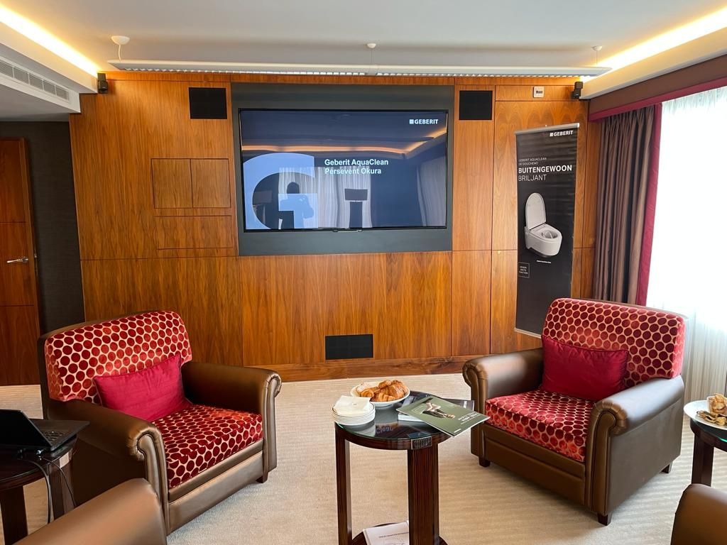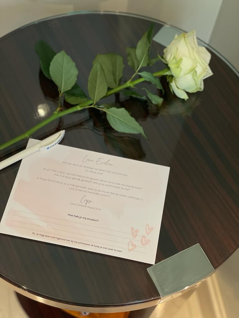 Vanwege het super-de-luxe karakter van deze dag en de nadere kennismaking met Geberit en de Geberit AquaClean douchewc had elke gast gedurende haar verblijf een privé toiletruimte. Bij binnenkomst werd in deze privé toiletruimte één op één uitleg gegeven over de werking van de AquaClean douchewc en het reinigen met water. Tijdens het verblijf kon daardoor - in alle rust en privacy - het reinigen met water ervaren worden voor de meest optimale wellnessbeleving die dag.