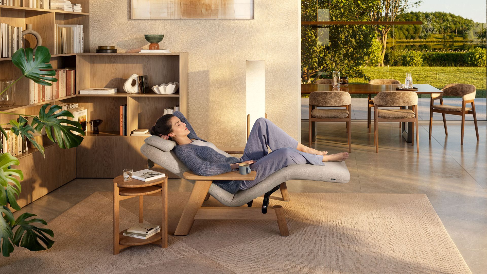 Door de combinatie van gezondheidsbevorderende effecten, verfijnd design en meesterlijk vakmanschap is de SOMRA wellnesslounger een uitdrukking van zintuiglijk comfort en staat zij voor een ongeëvenaard gevoel van geborgenheid, elegantie en rust.