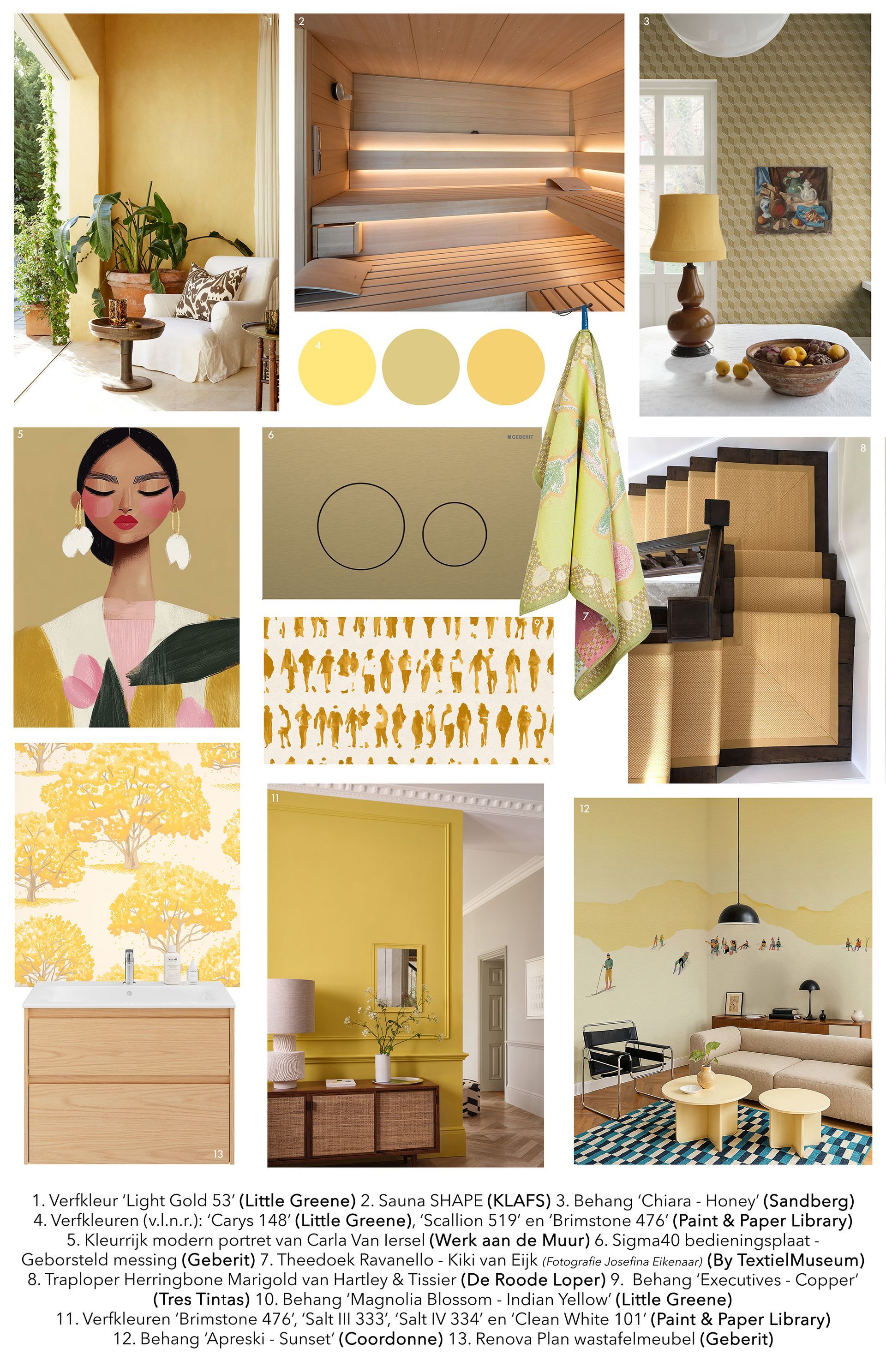 Geel werkt als zonlicht binnenshuis: subtiel aanwezig, altijd sfeerverhogend, maar nooit overheersend. Van zacht (butter) yellow tot krachtiger tinten, geel combineert moeiteloos met natuurlijke materialen, laat goudaccenten extra stralen en geeft zelfs wellnessruimtes en sauna’s een warme, bijna magische sfeer. Niet schreeuwerig, wel uitgesproken, en precies daarom blijft deze kleur ons ook dit seizoen betoveren.